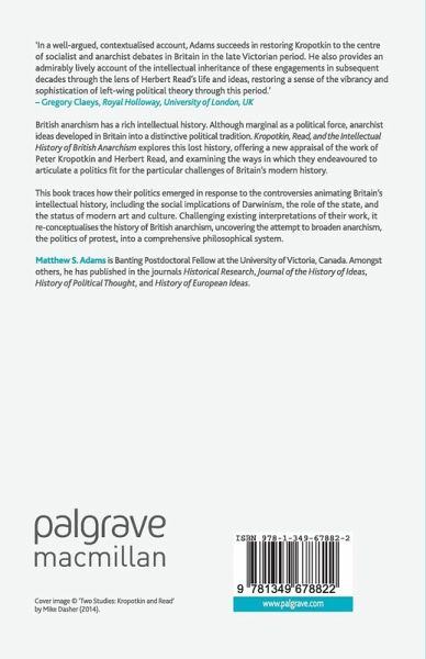 "Matthew S. Adams innovative intellectual history of British anarchism...aims to bring to light a dimension of Britain's cultural past that has been ill served by historians. ... we have Adams to thank for having identified and astutely assessed the various ways in which both Kropotkin and Read articulated to a British audience the contemporary relevance of a much-maligned and poorly understood ideology." (George Esenwein, American Historical Review, June, 2017)