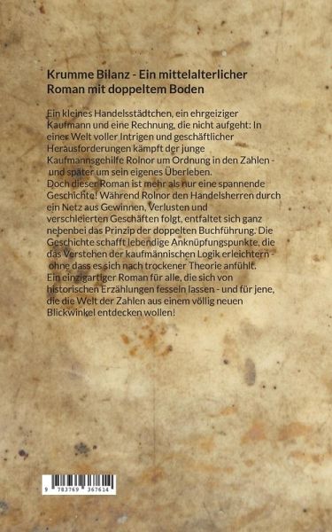 Krumme Bilanz - Ein mittelalterlicher Roman mit doppeltem Boden Ein kleines Handelsstädtchen, ein ehrgeiziger Kaufmann und eine Rechnung, die nicht aufgeht: In einer Welt voller Intrigen und geschäftlicher Herausforderungen kämpft der junge Kaufmannsgehilfe Rolnor um Ordnung in den Zahlen - und später um sein eigenes Überleben. Doch dieser Roman ist mehr als nur eine spannende Geschichte! Während Rolnor den Handelsherren durch ein Netz aus Gewinnen, Verlusten und verschleierten Geschäften folgt, entfaltet sich ganz nebenbei das Prinzip der doppelten Buchführung. Die Geschichte schafft lebendige Anknüpfungspunkte, die das Verstehen der kaufmännischen Logik erleichtern - ohne dass es sich nach trockener Theorie anfühlt. Ein einzigartiger Roman für alle, die sich von historischen Erzählungen fesseln lassen - und für jene, die die Welt der Zahlen aus einem völlig neuen Blickwinkel entdecken wollen!