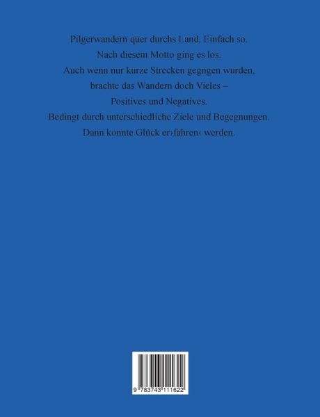 Pilgerwandern quer durchs Land. Einfach so.Auch wenn nur Kurzstrecken gegangen werden, so bringt diese Art des Pilgern doch Vieles -Positives, aber auch Negatives.Vor allem, wenn sich die Ziele unterscheiden, mit anderen Landschaften und Begegnungen und Glück erfahren wird.