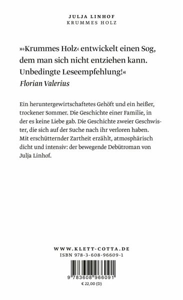 »Nichts wächst einfach und gerade in Julja Linhofs fesselndem Anti-Heimatroman 'Krummes Holz'. In einem Alter, in dem andere von zu Hause weggehen, um fürs Leben zu lernen, kommt der 19-jährige Jirka aus dem Internat auf den Hof seiner Familie zurück. Es ist ein Zuhause, in dem niemand auf ihn wartet. In dem alten Bauernhaus dominieren Gefühlskälte und Schweigen. Die depressive Mutter ist verstorben, vom gewalttätigen Vater fehlt jede Spur, Jirkas Schwester Malene redet nicht mehr mit ihm. Und mit dem älteren Verwaltersohn Leander verbindet ihn ein Geheimnis ...«