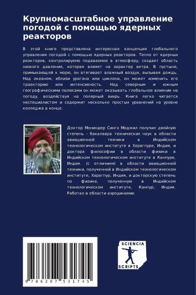 V ätoj knige predstawlena interesnaq koncepciq global'nogo uprawleniq pogodoj s pomosch'ü qdernyh reaktorow. Teplo ot qdernyh reaktorow, kontroliruemo podawaemoe w atmosferu, sozdaet oblast' nizkogo dawleniq, kotoraq wliqet na harakter wetra. V pustyne, primykaüschej k morü, on wtqgiwaet wlazhnyj wozduh, wyzywaq dozhd'. Nad okeanom, wblizi uragana ili ciklona, on mozhet izmenit' ego traektoriü ili intensiwnost'. Nad sewernym i üzhnym geograficheskimi polüsami on mozhet okazywat' global'noe wliqnie na pogodu, wozdejstwuq na polqrnyj wihr'. Kniga legko chitaetsq nespecialistom i soderzhit neskol'ko prostyh urawnenij na urowne kolledzha w konce.