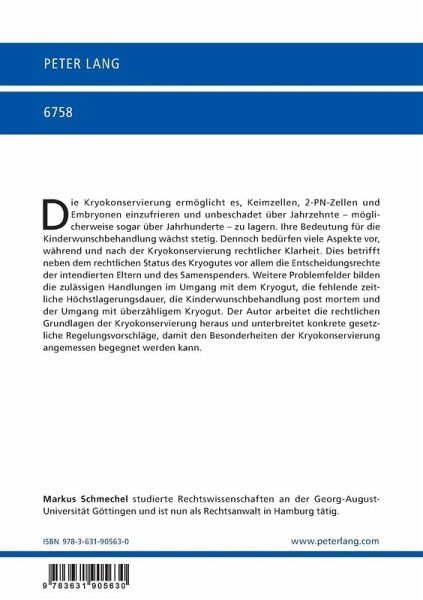 Der Autor arbeitet die rechtlichen Grundlagen der Kryokonservierung heraus. Hierbei zeigt er auf, an welchen Stellen ein gesetzlicher Regelungsbedarf besteht und unterbreitet konkrete Regelungsvorschläge.