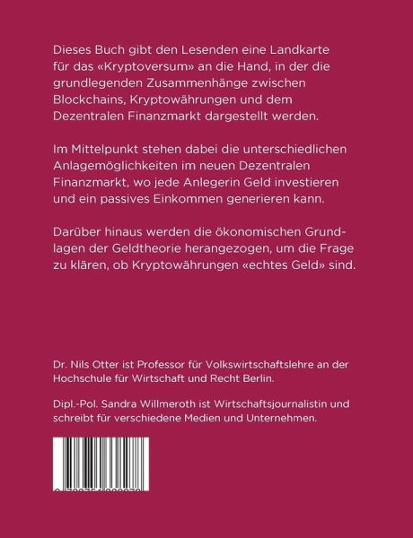In diesem Buch werden einerseits die ökonomischen Grundlagen von Kryptowährungen geschildert und andererseits detailliert Auskunft darüber gegeben, wie Anlegerinnen mit Kryptowährungen am Dezentralisierten Finanzmarkt (DeFi) investieren und passives Einkommen generieren können.Kryptowährungen und insbesondere der Dezentralisierte Finanzmarkt (DeFi) haben ein neues Finanzsystem hervorgebracht, das nicht veränderlich und nicht manipulierbar und zudem hochgradig interoperabel ist. Finanzdienstleistungen werden hier nicht nur repliziert, sondern schneller, sicherer und transparenter angeboten. Für das klassische Finanzsystem bedeutet das eine innovative Bedrohung.