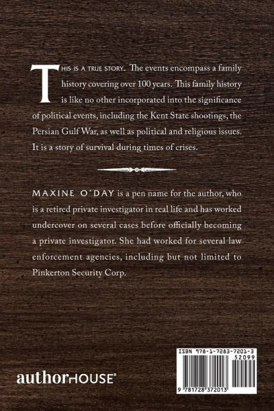 This is a true story. The events encompass a family history covering over 100 years. This family history is like no other incorporated into the significance of political events, including the Kent State shootings, the Persian Gulf War, as well as political and religious issues. It is a story of survival during times of crises.