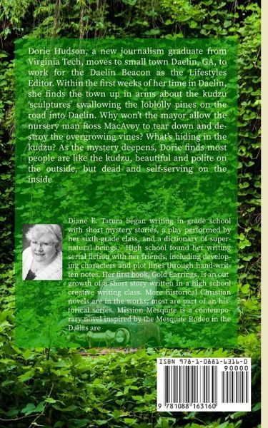 Dorie Hudson, a new journalism graduate from Virginia Tech, moves to small town Daelin, GA, to work for the Daelin Beacon as the Lifestyles Editor. Within the first weeks of her time in Daelin, she finds the town up in arms about the kudzu 'sculptures' swallowing the loblolly pines on the road into Daelin. Why won't the mayor allow the nursery man Ross MacAvoy to tear down and destroy the overgrowing vines? What's hiding in the kudzu? ¿As the mystery deepens, Dorie finds most people are like the kudzu, beautiful and polite on the outside, but dead and self-serving on the inside.