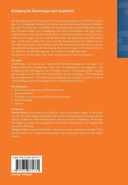 Die Kündigung im Bauvertrag ist mit vielen Unwägbarkeiten und Risiken verbunden. Das vorliegende Fachbuch stellt diese anhand zahlreicher Beispiele, Abbildungen und Theorieblöcke verständlich und praxisnah dar. Es behandelt dabei neben den Voraussetzungen einer Kündigung auch deren Rechtsfolgen und zeigt umfassend die damit verbundenen Risiken für den weiteren Bauablauf und die hierzu bestehenden Lösungen auf. Im Vordergrund werden die Regelungen des BGB behandelt. Gleichzeitig werden aber stets auch die Besonderheiten der VOB/B erörtert.Das Buch bietet neben einer Einführung in die Thematik auch alles Nötige zur umfassenden Befassung mit der Kündigung eines Bauvertrages. Die Autoren beleuchten dabei sowohl die Auftraggeber- als auch die Auftragnehmerseite.