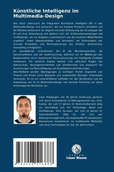 Das Buch untersucht die Integration künstlicher Intelligenz (KI) in das Multimedia-Design und analysiert, wie sie kreative Prozesse verändert und die Effizienz verbessert. Es beginnt mit einer Erläuterung der Grundlagen der KI und ihrer Entwicklung und befasst sich mit Schlüsselanwendungen wie Grafikdesign, wo sie Aufgaben automatisiert und die kreativen Möglichkeiten erweitert, sowie Videoproduktion und Animation, wo Technologien wie virtuelle Produktion und Personalisierung von Inhalten dynamisches Storytelling ermöglichen.Im Sounddesign revolutioniert die KI die Musikkomposition, die Sprachsynthese und die Audiomischung, während sie im Webdesign das Nutzererlebnis durch dynamische Personalisierung und intelligente Chatbots verbessert. Ein weiteres Kapitel widmet sich ethischen Fragen wie Datenschutz, Voreingenommenheit und Urheberrecht und analysiert die Auswirkungen auf Beschäftigung und Qualifikationsanforderungen.Abschließend werden Überlegungen zu künftigen Trends angestellt und Theorie und Praxis durch Beispiele und angewandte Übungen miteinander verbunden. Es ist ein unverzichtbarer Leitfaden für das Verständnis und die Anwendung von KI im Multimedia-Design und bereitet Fachleute auf diese technologische Revolution vor.