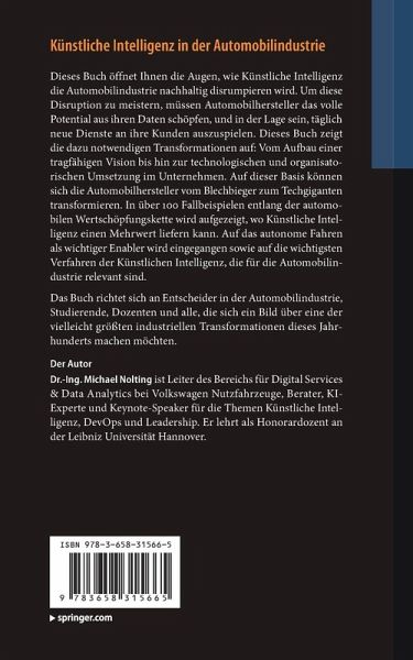 Dieses Buch öffnet Ihnen die Augen, wie Künstliche Intelligenz die Automobilindustrie nachhaltig disrumpieren wird. Um diese Disruption zu meistern, müssen Automobilhersteller das volle Potential aus ihren Daten schöpfen, und in der Lage sein, täglich neue Dienste an ihre Kunden auszuspielen. Dieses Buch zeigt die dazu notwendigen Transformationen auf: Vom Aufbau einer tragfähigen Vision bis hin zur technologischen und organisatorischen Umsetzung im Unternehmen. Auf dieser Basis können sich die Automobilhersteller vom Blechbieger zum Techgiganten transformieren. In über 100 Fallbeispielen entlang der automobilen Wertschöpfungskette wird aufgezeigt, wo Künstliche Intelligenz einen Mehrwert liefern kann. Auf das autonome Fahren als wichtiger Enabler wird eingegangen sowie auf die wichtigsten Verfahren der Künstlichen Intelligenz, die für die Automobilindustrie relevant sind.