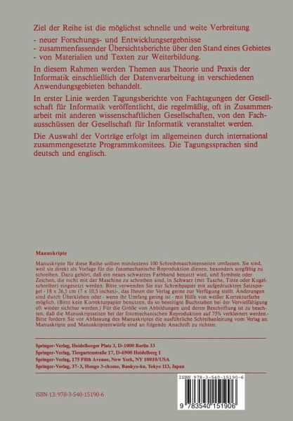 Um der starken Nachfrage nach Ausbildung und Fortbildung im Bereich der Künstlichen Intelligenz Rechnung zu tragen, wurde vom Fachausschuss 1.2 ''Künstliche Intelligenz und Mustererkennung" der Gesellschaft für Informatik vom 5. -16. März 1984 in DasseI (Solling) eine zweiwöchige Frühjahrsschule durchgeführt. Diese Frühjahrsschule war die Nachfolgeveranstaltung zur KIFS-82, die im März 1982 in Teisendorf stattfand. Die diesjährige KIFS stand unter dem Themenschwerpunkt "Repräsentation von Wissen und natürlichsprachliche Systeme". Das Kursangebot umfasste: Gruldkurse: - Bildverstehen (B. Neumann, Hamburg) - Automatisches Beweisen (J. Siekmann, Kaiserslautern) - Natürlichsprachliche Systeme (W. Wahlster, Saarbrücken) Aufbaukurse: - Inferenzmethoden (W. Bibel, München) - Parser als integraler Bestandteil von Sprachverarbeitungssystemen (T. Christaller, Hamburg) - Lernen und Wissensakquisition (Ch. Habel & C.-R. Rollinger, Berlin) - Techniken der Wissensdarstellung (J. Laubseh, Stuttgart) - Textverstehen und Textproduktion (U. Quasthoff-Hartmann, Bielefeld). - Semantik~odelle in der Künstlichen Intelligenz (C. Schwind, Marseille) Spezialkurse: - LISP (G. Görz, Erlangen) - LISP 2 (H. Stoyan, Erlangen) - PROLOG (H. Gust & M. König, Osnabrück/ Berlin) Die Durchführung der Spezialkurse, die eine Einführung bzw. Vertiefung der für die KI wichtigsten Programmiersprachen zum Ziel hatten, erfolgte auf Kleinrechnern (verschiedener Hersteller) und zum Teil auf einer LISP~aschine. Die Rechner wurden ausserdem für Übungen und Vorführungen zu einigen der weiteren Kurse verwendet. Hierdurch wurde es möglich, die im Vorlesungsteil der Kurse erworbenen theoretischen Kenntnisse, teilweise sogar am Rechner anzuwenden.