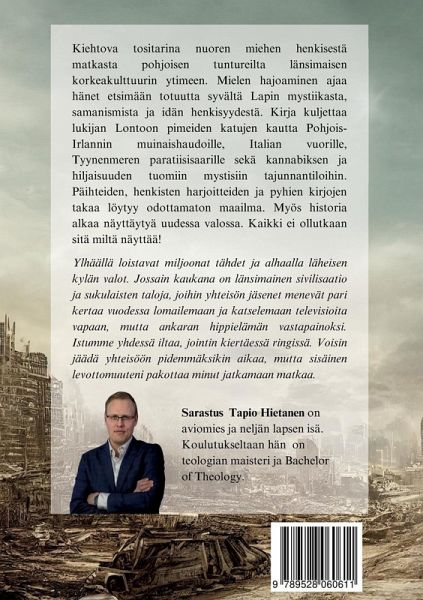 Kiehtova tositarina nuoren miehen henkisestä matkasta pohjoisen tuntureilta länsimaisen korkeakulttuurin ytimeen. Mielen hajoaminen ajaa hänet etsimään totuutta syvältä Lapin mystiikasta, samanismista ja idän henkisyydestä. Kirja kuljettaa lukijan Lontoon pimeiden katujen kautta Pohjois-Irlannin muinaishaudoille, Italian vuorille, Tyynenmeren paratiisisaarille sekä kannabiksen ja hiljaisuuden tuomiin mystisiin tajunnantiloihin. Päihteiden, henkisten harjoitteiden ja pyhien kirjojen takaa löytyy odottamaton maailma. Myös historia alkaa näyttäytyä uudessa valossa. Kaikki ei ollutkaan sitä miltä näyttää!
