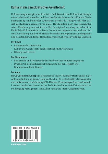 Kulturmanagement gilt sowohl bei den Praktikern in den Kultureinrichtungen wie auch bei den Lehrenden und Forschenden vielfach nur als Hilfsmittel für die Finanzierung von kulturellen Aktivitäten. Bernhard M. Hoppe stellt klar, dass sich das Kulturmanagement von dieser Hilfsfunktion nach drei Jahrzehnten seiner Etablierung emanzipieren sollte. Er zeigt auf, wie das gesellschaftliche Umfeld der Kulturbetriebe im Fokus des Kulturmanagements stehen kann. Aus einer Ausrichtung auf die Bedürfnisse des Publikums ergeben sich umfangreiche und sich ständig wandelnde Herausforderungen, aber auch vielfältige Chancen.