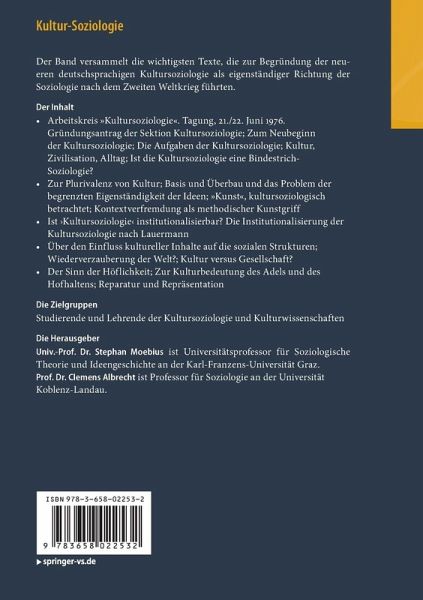 Der Band versammelt die wichtigsten Texte, die zur Begründung der neueren deutschsprachigen Kultursoziologie als eigenständiger Richtung der Soziologie nach dem Zweiten Weltkrieg führten.