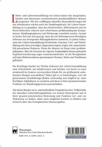 Lehrer- und Lehrerinnenbildung war schon immer den Ansprüchen, Idealen und Interessen verschiedenster gesellschaftlicher Akteure ausgesetzt. Mit den vielfältigen aktuellen Herausforderungen für das Schulsystem wächst auch der Handlungsdruck, die Lehrer/innenbildung so (um)zugestalten, dass den Studierenden, Referendaren und im Beruf stehenden Lehrern und Lehrerinnen problemadäquate Kompetenzen, Handlungsoptionen und Werkzeug vermittelt werden. Gerade in letzter Zeit hat sich jedoch auch gezeigt, dass die am Reformprozess Beteiligten teilweise aus divergenten Bildungskulturen stammen. In jedem Subsystem der Lehrer/innenbildung (Hochschule, Seminar, Fort- und Weiterbildung mit ihren jeweiligen Segmentierungen) zeigen sich unterschiedlich gewachsene Kulturen. Wenn die Akteure im Sinne einer problemadäquaten, über die Grenzen der eigenen Zuständigkeit hinaus gehenden Ergebnisorientierung enger zusammenarbeiten, ist die Bezugnahme auf einen Referenzrahmen gemeinsamer Normen, Werte undTraditionen gefordert.