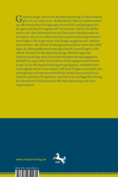 Genauso lange, wie es die Buchpreisbindung in Deutschland gibt, ist sie umstritten. Während Kritiker sie insbesondere aus ökonomischen Erwägungen anzweifeln und gelegentlich als "gesetzliches Zwangskartell" kritisieren, sind es die Befürworter mit dem Börsenverein des Deutschen Buchhandels an der Spitze, die sie vor allem mit kulturpolitischen Argumenten verteidigen. Die Argumente sind längst ausgetauscht, möchte man meinen. Mit ihrem Sondergutachten 80 aus dem Jahr 2018 legte die Monopolkommission gleichwohl einen Finger in die offene Wunde der Buchpreisbindung: Welcher legitime Schutzzweck liegt dem deutschen Buchpreisbindungsgesetz (BuchPrG) zugrunde? Auf welchen Schutzgegenstand kommt es an? Ist die Buchpreisbindung ein geeignetes, erforderliches und angemessenes Instrument? All diese Fragen untersucht die vorliegende rechtswissenschaftliche Arbeit facettenreich aus interdisziplinärer Perspektive und bietet Grundlagenforschung für die weitere Diskussion der Buchpreisbindung und ihrer Legitimation.