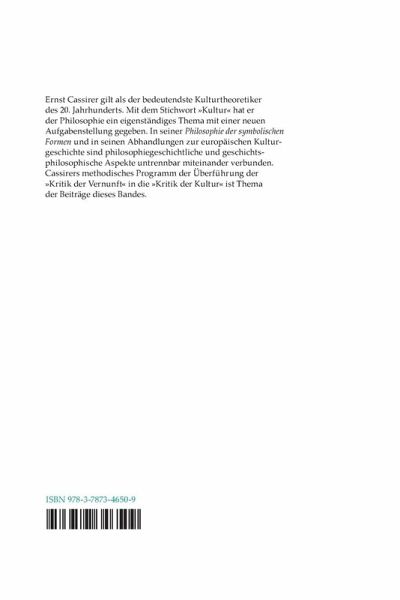 Ernst Cassirer gilt als der bedeutendste Kulturtheoretiker des 20. Jahrhunderts. Er hat der Philosophie mit dem Stichwort "Kultur" ein eigenständiges Thema mit einer neuen Aufgabenstellung gegeben. In seiner "Philosophie der symbolischen Formen" und in seinen Abhandlungen zur europäischen Kulturgeschichte sind philosophiegeschichtliche und geschichtsphilosophische Aspekte untrennbar miteinander verbunden. Cassirers methodisches Programm der Überführung der "Kritik der Vernunft" in die "Kritik der Kultur" ist Thema der Beiträge dieses Bandes.