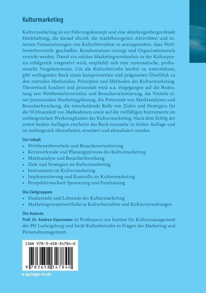 Kulturmarketing ist ein Führungskonzept und eine abteilungsübergreifende Denkhaltung, die darauf abzielt, die marktbezogenen Aktivitäten und internen Voraussetzungen von Kulturbetrieben so auszugestalten, dass Wettbewerbsvorteile geschaffen, Kundennutzen erzeugt und Organisationsziele erreicht werden. Damit ein solches Marketingverständnis in der Kulturpraxis erfolgreich umgesetzt wird, empfiehlt sich eine systematische, professionelle Vorgehensweise. Um die Kulturbetriebe hierbei zu unterstützen, gibt vorliegendes Buch einen komprimierten und prägnanten Überblick zu den zentralen Merkmalen, Prinzipien und Methoden des Kulturmarketing. Theoretisch fundiert und praxisnah wird u.a. eingegangen auf die Bedeutung von Wettbewerbsvorteilen und Besucherorientierung, die Vorteile einer prozessualen Marketingplanung, die Potenziale von Marktanalysen und Besucherforschung, die entscheidende Rolle von Zielen und Strategien für die Wirksamkeit von Maßnahmen sowie auf die vielfältigen Instrumente im umfangreichen Werkzeugkasten des Kulturmarketing. Nach dem Erfolg der ersten beiden Auflagen erscheint das Buch nunmehr in dritter Auflage und ist umfangreich überarbeitet, erweitert und aktualisiert worden.