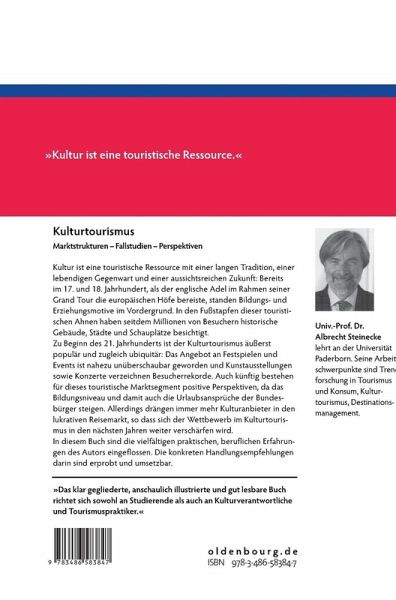 Hilfreiche Trainingsfragen zu diesem Buch finden Sie unter: Kultur ist eine touristische Ressource mit einer langen Tradition, einer lebendigen Gegenwart und einer aussichtsreichen Zukunft: Bereits im 17. und 18. Jahrhundert, als der englische Adel im Rahmen seiner Grand Tour die europäischen Höfe bereiste, standen Bildungs- und Erziehungsmotive im Vordergrund. In den Fußstapfen dieser touristischen Ahnen haben seitdem Millionen von Besuchern historische Gebäude, Städte und Schauplätze besichtigt. In dieses Buch sind die vielfältigen praktischen beruflichen Erfahrungen des Autors eingeflossen. Die konkreten Handlungsempfehlungen darin sind erprobt und umsetzbar. Das klar gegliederte, anschaulich illustrierte und gut lesbare Buch richtet sich sowohl an Studierende als auch an Kulturverantwortliche und Tourismuspraktiker.
