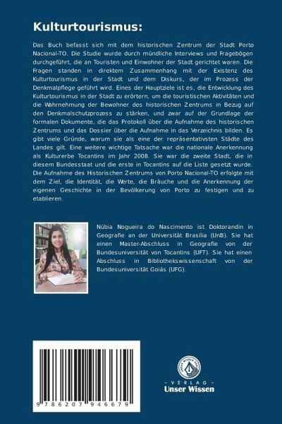 Das Buch befasst sich mit dem historischen Zentrum der Stadt Porto Nacional-TO. Die Studie wurde durch mündliche Interviews und Fragebögen durchgeführt, die an Touristen und Einwohner der Stadt gerichtet waren. Die Fragen standen in direktem Zusammenhang mit der Existenz des Kulturtourismus in der Stadt und dem Diskurs, der im Prozess der Denkmalpflege geführt wird. Eines der Hauptziele ist es, die Entwicklung des Kulturtourismus in der Stadt zu erörtern, um die touristischen Aktivitäten und die Wahrnehmung der Bewohner des historischen Zentrums in Bezug auf den Denkmalschutzprozess zu stärken, und zwar auf der Grundlage der formalen Dokumente, die das Protokoll über die Aufnahme des historischen Zentrums und das Dossier über die Aufnahme in das Verzeichnis bilden. Es gibt viele Gründe, warum sie als eine der repräsentativsten Städte des Landes gilt. Eine weitere wichtige Tatsache war die nationale Anerkennung als Kulturerbe Tocantins im Jahr 2008. Sie war die zweite Stadt, die in diesem Bundesstaat und die erste in Tocantins auf die Liste gesetzt wurde. Die Aufnahme des Historischen Zentrums von Porto Nacional-TO erfolgte mit dem Ziel, die Identität, die Werte, die Bräuche und die Anerkennung der eigenen Geschichte in der Bevölkerung von Porto zu festigen und zu etablieren.