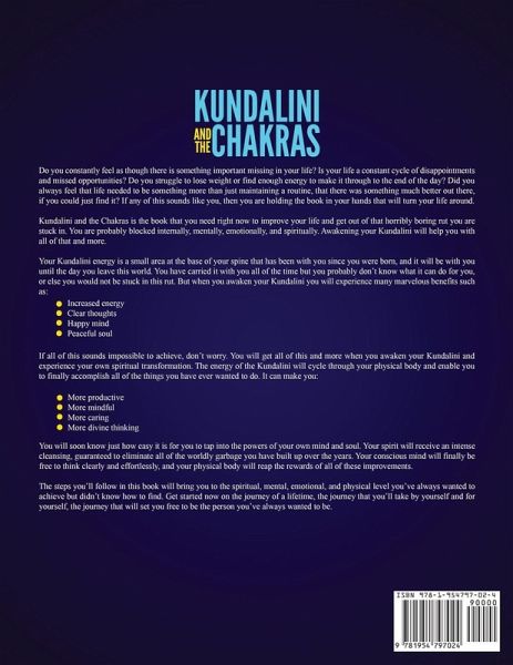 Do you constantly feel as though there's something important missing in your life? Is your life a constant cycle of disappointments and missed opportunities? Do you struggle to lose weight or find enough energy to make it through to the end of the day? Have you always felt that there was so much more to life than just maintaining a routine? If any of this sounds familiar, then this book is for you... Kundalini and the Chakras is the book that you need right now to improve your life and get out of that rut you're stuck in. You're probably blocked internally, mentally, emotionally, and spiritually. Awakening your Kundalini will help you with all of that and more... In this book you'll learn: Kundalini Awakening Chakra Awakening Spiritual awareness Channeling Expand mind power Mediumship Clairvoyance Mysticism Intuition And much more... You'll also learn how to experience the spiritual benefits such as: Increased energy Clear thoughts Happy mind Peaceful soul More productive More mindful More caring More divine thinking And so much more! This book will help you tap into the powers of your own mind and soul. Your spirit will receive an intense cleansing, guaranteed to eliminate all of the worldly garbage you've built up over the years. Your conscious mind will finally be free to think clearly and effortlessly, and your physical body will reap the rewards of all of these improvements... The steps you'll follow in this book will bring you to the spiritual, mental, emotional, and physical level you've always wanted to achieve but didn't know how to find. Get this book and start your Kundalini journey today! Grab your copy of Kundalini and the Chakras now!