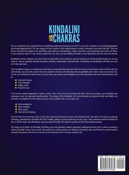Do you constantly feel as though there's something important missing in your life? Is your life a constant cycle of disappointments and missed opportunities? Do you struggle to lose weight or find enough energy to make it through to the end of the day? Have you always felt that there was so much more to life than just maintaining a routine? If any of this sounds familiar, then this book is for you... Kundalini and the Chakras is the book that you need right now to improve your life and get out of that rut you're stuck in. You're probably blocked internally, mentally, emotionally, and spiritually. Awakening your Kundalini will help you with all of that and more... In this book you'll learn: Kundalini Awakening Chakra Awakening Spiritual awareness Channeling Expand mind power Mediumship Clairvoyance Mysticism Intuition And much more... You'll also learn how to experience the spiritual benefits such as: Increased energy Clear thoughts Happy mind Peaceful soul More productive More mindful More caring More divine thinking And so much more! This book will help you tap into the powers of your own mind and soul. Your spirit will receive an intense cleansing, guaranteed to eliminate all of the worldly garbage you've built up over the years. Your conscious mind will finally be free to think clearly and effortlessly, and your physical body will reap the rewards of all of these improvements... The steps you'll follow in this book will bring you to the spiritual, mental, emotional, and physical level you've always wanted to achieve but didn't know how to find. Get this book and start your Kundalini journey today! Grab your copy of Kundalini and the Chakras now!