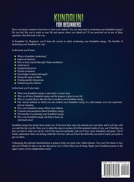 Have you always wanted to learn how to clear your chakras? Are you interested in awakening your Kundalini energy? Do you feel like you're stuck in life and unsure where you should go? If you answered yes to any of these questions, then this book is for you... In Kundalini for Beginners, you'll learn the secrets to safely awakening your Kundalini energy. The benefits of awakening your Kundalini are vast... This two-in-one series includes the following 2 books: 1. Kundalini for Beginners: Awaken Your Kundalini Energy, Achieve Higher Consciousness, Expand Your Mind, Decalcify Pineal Gland 2. Kundalini Energy: Beginner's Guide to Open Your Third Eye Chakra, Increase Awareness, Enhance Psychic Abilities and Awaken Your Energetic Potential In this book you'll learn: What is Kundalini Awakening? How to heal yourself through Chakra meditation Expand mind power Increase psychic awareness Enhance psychic abilities Knowledge of spirits and angels Seeing the auras of others Astral travel Visiting parallel dimensions Improved intuition In this book you'll also learn: What your Kundalini energy is and where it comes from Why we all have Kundalini energy and the purpose it plays in our life Why it's a good idea to take the time to awaken your Kundalini energy The various methods in which you can awaken your Kundalini energy in a safe manner, as to not experience adverse reactions How your Kundalini energy affects your chakras Common misconceptions about Kundalini energy The benefits of awakening your Kundalini energy How your Kundalini energy can help to heal you And so much more! Kundalini energy has always been inside you. It has been there since the moment you were born, and it will stay with you until the day you die. Once you've taken the steps to awaken all of this potential inside of you, you'll find that you have no limit to what you can do. You'll feel renewed spiritually, and you'll have more tranquility and peace. You'll finally understand where you belong within the Universe, and you'll have the skills that you need to reach your goals to get you there... Undergoing this spiritual transformation is going to help you reach your wildest dreams. You won't feel alone or lost, and you'll finally be able to tap into that power you've had within you all along. Get this book and begin your Kundalini journey to the upper realms of true enlightenment today! Grab your copy of Kundalini for Beginners now!