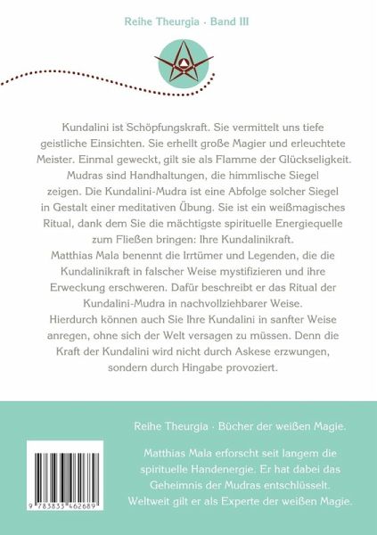 Kundalini ist Schöpfungskraft. Sie vermittelt tiefe Einsichten. Sie erhellt und erleuchtet den Mystiker. Einmal geweckt gilt sie als Flamme der Glückseligkeit.Mudras sind Handhaltungen und Siegel wie Schlüssel zu himmlischen Sphären. Sie regen spirituelle Energien an und bringen sie zum Fließen. Die Kundalini-Mudra ist eine Abfolge solcher Siegel als meditative Übung. Sie ist ein weißmagisches Ritual, dank dem Sie die mächtigste spirituelle Energiequelle zum Fließen bringen: Ihre Kundalinikraft.Matthias Mala benennt die Irrtümer und Legenden, die die Kundalinikraft in falscher Weise mystifizieren und ihre Erweckung erschweren. Dafür beschreibt er das Ritual der Kundalini-Mudra in nachvollziehbarer Weise und ausführlich bebildert. Hierdurch können auch Sie Ihre Kundalini in sanfter Weise anregen, ohne sich der Welt versagen zu müssen.