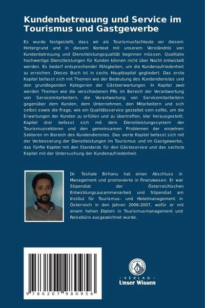 Es wurde festgestellt, dass wir als Tourismusfachleute vor diesem Hintergrund und in diesem Kontext mit unserem Verständnis von Kundenbetreuung und Dienstleistungsqualität beginnen müssen. Qualitativ hochwertige Dienstleistungen für Kunden können nicht über Nacht entwickelt werden. Es bedarf entsprechender Fähigkeiten, um die Kundenzufriedenheit zu erreichen. Dieses Buch ist in sechs Hauptkapitel gegliedert. Das erste Kapitel befasst sich mit Themen wie der Bedeutung des Kundendienstes und den grundlegenden Kategorien der Gästeerwartungen. In Kapitel zwei werden Themen wie die verschiedenen PRs im Bereich der Verantwortung von Servicemitarbeitern, die Verantwortung von Servicemitarbeitern gegenüber dem Kunden, dem Unternehmen, den Mitarbeitern und sich selbst sowie die Frage, wie ein Qualitätsservice gestaltet sein sollte, um die Erwartungen der Kunden zu erfüllen und zu übertreffen, klar herausgestellt. Kapitel drei befasst sich mit dem Dienstleistungssystem der Tourismussektoren und den gemeinsamen Problemen der einzelnen Sektoren im Bereich des Kundendienstes. Das vierte Kapitel befasst sich mit der Verbesserung der Dienstleistungen im Tourismus und im Gastgewerbe, das fünfte Kapitel mit den Standards für den Gästeservice und das sechste Kapitel mit der Untersuchung der Kundenzufriedenheit.