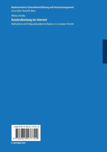 Nikolai Lihotzky identifiziert mögliche Maßnahmen zur Kundenbindung und ermittelt ihre Wirksamkeit, wobei die klassische Geschäftsbeziehungs- und Kundenbindungsforschung einerseits und die Spezifika der Internetökonomie andererseits als Ausgangspunkte dienen. Er entwickelt ein Portfolio von neun unterschiedlichen Kundenbindungsmaßnahmen und untersucht deren Wirksamkeit empirisch. Es zeigt sich, dass der Grad der Kundenbindung durch die Ausgestaltung des Angebots aktiv beeinflusst werden kann. Anbietern im B-to-C Electronic Business präsentiert der Autor ein erstes Aktionsparameter-Set zur konkreten Ausgestaltung ihres Angebots, mit dessen Hilfe sie die Bindung ihrer Kunden erhöhen können.