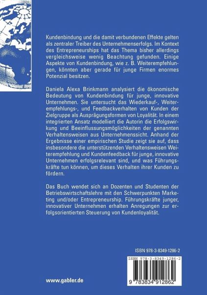 Daniela Alexa Brinkmann analysiert die ökonomische Bedeutung von Kundenbindung für junge, innovative Unternehmen. Sie untersucht das Wiederkauf-, Weiterempfehlungs-, und Feedbackverhalten von Kunden der Zielgruppe als Ausprägungsformen von Loyalität. In einem integrierten Ansatz modelliert die Autorin die Erfolgswirkung und Beeinflussungsmöglichkeiten der genannten Verhaltensweisen aus Unternehmenssicht. Anhand der Ergebnisse einer empirischen Studie zeigt sie auf, dass insbesondere die unterstützenden Verhaltensweisen Weiterempfehlung und Kundenfeedback für junge, innovative Unternehmen erfolgsrelevant sind, und was Führungskräfte tun können, um dieses Verhalten ihrer Kunden zu fördern.