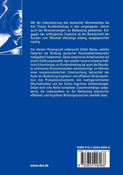 Vor diesem Hintergrund untersucht Zoltán Bakay, welche Faktoren die Bindung deutscher Haushaltsstromkunden maßgeblich bestimmen. Seine empirische Arbeit basiert auf einem Erklärungsmodell, das sowohl neuere wissenschaftliche Erkenntnisse zur Kundenbindung als auch die Resultate zahlreicher Branchenstudien berücksichtigt. Im Rahmen einer kausalanalytischen Untersuchung betrachtet der Autor die Bedeutung kognitiver und affektiver Bindungsmotive, des Produktinvolvements, des wahrgenommenen Wechselrisikos und der Scheu kognitiver Aufwendungen. Dabei wird eine Reihe komplexer Zusammenhänge aufgedeckt, die insbesondere an der Bedeutung klassischer affektiver und kognitiver Bindungsursachen zweifeln lässt.