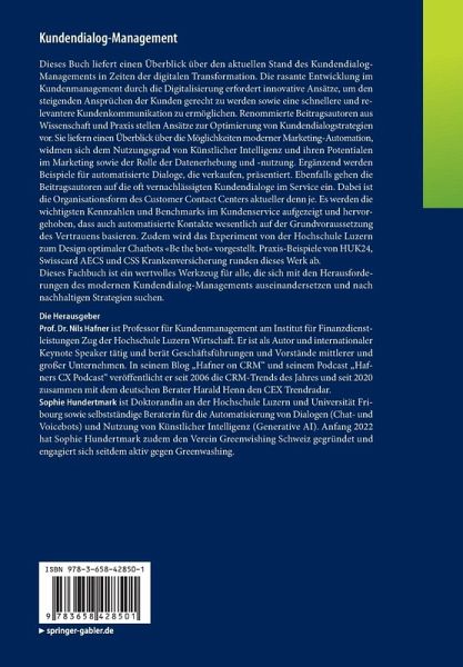 Strategisches Kundendialogmanagement - die Automatisierungsentscheidung datenbasiert fällen.- Die vier Bausteine einer menschenzentrierten Kultur: Die Zutaten für ein gesundes Frühstück.- Effektives Kundendialog-Management durch eine kundenzentrierte Organisation.- Digitaler Kunde im Mittelpunkt - Die Persönliche Versicherungsmaschine der HUK24.- KI und Kundendialoge - Darum ist der Faktor Mensch weiter wichtig.- Kundendialog-Management in Zeiten der Marketing-Automation.- Mit Datenkompetenz zur Datenstrategie.- Dialoge, die verkaufen: Mit Conversational Automation zur Kundenbindung.- Contact Center als zentraler Kommunikationshub.- Kennzahlen und Controlling im Kundendialog.- Vertrauen in automatisierte Kundendialoge.- Be the Bot - Versicherungskunden in der Rolle eines Chatbots.- Kundenanliegen verstehen, lösen und daraus lernen.- Digital Product-Experience @ CSS.- Interaktionen in der Konversationstheorie und auf Basis eines Rechnens mit Worten.- Large Language Models im Kundendialog - Chancen, Risiken, Ausblicke.