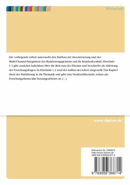 Masterarbeit aus dem Jahr 2015 im Fachbereich BWL - Marketing, Unternehmenskommunikation, CRM, Marktforschung, Social Media, Note: 2,0, Universität Paderborn (Betriebswirtschaftslehre), Sprache: Deutsch, Abstract: Die vorliegende Arbeit untersucht den Einfluss der Incentivierung und der Multi-Channel-Integration des Kundenengagements auf die Kundenloyalität. Abschnitt 1.1 gibt zunächst Aufschluss über die Relevanz des Themas und beschreibt die Ableitung der Forschungsfragen. In Abschnitt 1.2 wird der Aufbau der Arbeit dargestellt. Das Kapitel dient der Einführung in die Thematik und gibt eine Strukturübersicht, sodass das Forschungsthema klar herausgearbeitet ist.