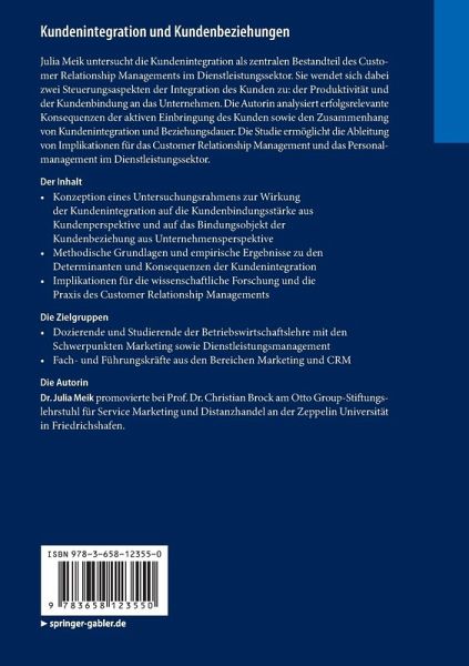Julia Meik untersucht die Kundenintegration alszentralen Bestandteil des Customer Relationship Managements im Dienstleistungssektor.Sie wendet sich dabei zwei Steuerungsaspekten der Integration des Kunden zu:der Produktivität und der Kundenbindung an das Unternehmen. Die Autorinanalysiert erfolgsrelevante Konsequenzen der aktiven Einbringung des Kundensowie den Zusammenhang von Kundenintegration und Beziehungsdauer. Die Studieermöglicht die Ableitung von Implikationen für das Customer RelationshipManagement und das Personalmanagement im Dienstleistungssektor.