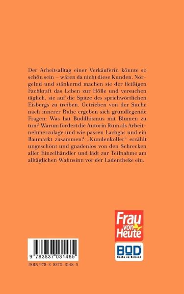 Der Arbeitsalltag einer Verkäuferin könnte so schön sein - wären da nicht diese Kunden. Nörgelnd und stänkernd machen sie der fleißigen Fachkraft das Leben zur Hölle und versuchen täglich, sie auf die Spitze des sprichwörtlichen Eisbergs zu treiben. Getrieben von der Suche nach innerer Ruhe ergeben sich grundlegende Fragen: Was hat Buddhismus mit Blumen zu tun? Warum fordert die Autorin Rum als Arbeitnehmerzulage und wie passen Lachgas und ein Baumarkt zusammen? "Kundenkoller" erzählt ungeschönt und gnadenlos von den Schrecken aller Einzelhändler und lädt zur Teilnahme am alltäglichen Wahnsinn vor der Ladentheke ein.