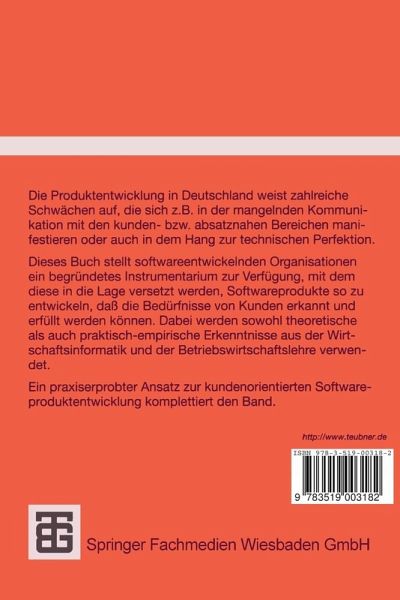 Die Produktentwicklung in Deutschland weist zahlreiche Schwächen auf, die sich z.B. in der mangelnden Kommunikation mit den kunden- bzw. absatznahen Bereichen manifestieren oder auch in dem Hang zur technischen Perfektion. Das Buch stellt softwareentwickelnden Organistationen ein begründetes Instrumentarium zur Verfügung, mit dem diese in die Lage verstetzt werden, Softwareprodukte so zu entwicklen, dass die Bedürfnisse von Kunden erkannt und erfüllt werden können. Hierbei werden sowohl theoretische als auch praktisch-empirische Erkenntnisse aus der Wirtschaftsinformatik und der Betriebswirtschaftslehre verwendet.