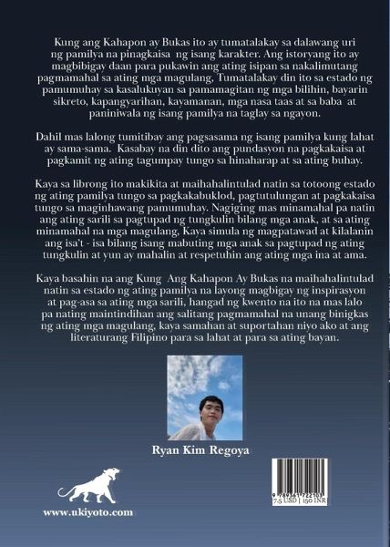 Kung ang Kahapon ay Bukas ito ay tumatalakay sa dalawang uri ng pamilya na pinagkaisa ng isang karakter. Ang istoryang ito ay magbibigay daan para pukawin ang ating isipan sa nakalimutang pagmamahal sa ating mga magulang, Tumatalakay din ito sa estado ng pamumuhay sa kasalukuyan sa pamamagitan ng mga bilihin, bayarin sikreto, kapangyarihan, kayamanan, mga nasa taas at sa baba at paniniwala ng isang pamilya na taglay sa ngayon. Dahil mas lalong tumitibay ang pagsasama ng isang pamilya kung lahat ay sama-sama. Kasabay na din dito ang pundasyon na pagkakaisa at pagkamit ng ating tagumpay tungo sa hinaharap at sa ating buhay. Kaya sa librong ito makikita at maihahalintulad natin sa totoong estado ng ating pamilya tungo sa pagkakabuklod, pagtutulungan at pagkakaisa tungo sa maginhawang pamumuhay. Nagiging mas minamahal pa natin ang ating sarili sa pagtupad ng tungkulin bilang mga anak, at sa ating minamahal na mga magulang, Kaya simula ng magpatawad at kilalanin ang isa't - isa bilang isang mabuting mga anak sa pagtupad ng ating tungkulin at yun ay mahalin at respetuhin ang ating mga ina at ama. Kaya basahin na ang Kung Ang Kahapon Ay Bukas na maihahalintulad natin sa estado ng ating pamilya na layong magbigay ng inspirasyon at pag-asa sa ating mga sarili, hangad ng kwento na ito na mas lalo pa nating maintindihan ang salitang pagmamahal na unang binigkas ng ating mga magulang, kaya samahan at suportahan niyo ako at ang literaturang Filipino para sa lahat at para sa ating bayan.