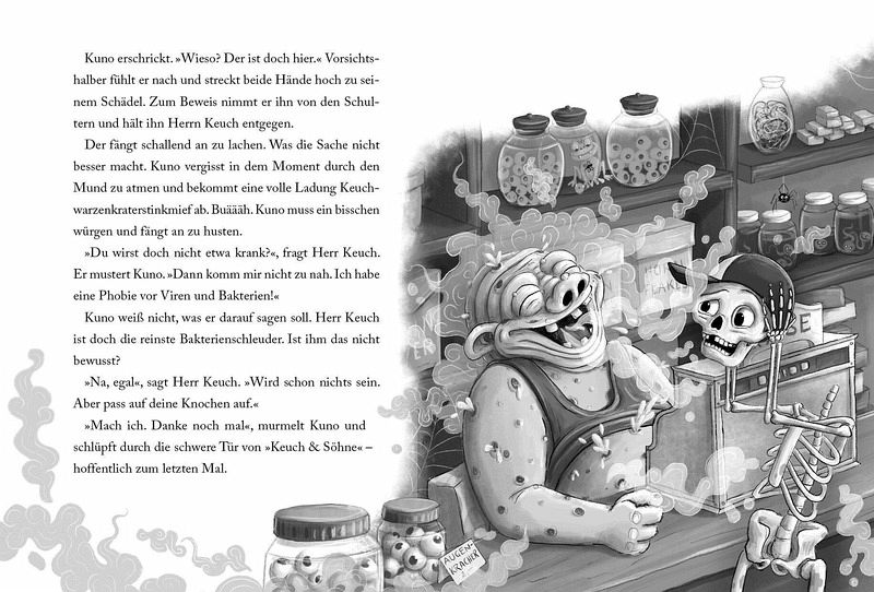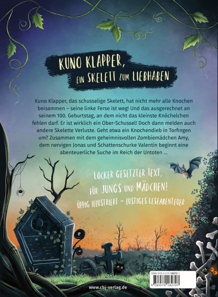 Kuno Klapper, das kleine Skelett, hat nicht mehr alle Knochen beisammen - seine linke Ferse ist weg! Und das ausgerechnet an seinem 100. Geburtstag, an dem nicht das kleinste Knöchelchen fehlen darf. Er ist wirklich ein Ober-Schussel. Doch dann melden auch andere Skelette Verluste. Geht etwa ein Knochendieb in Torfingen um? Zusammen mit dem geheimnisvollen Zombiemädchen Amy, dem nervigen Jonas und Schattenschurke Valentin beginnt eine abenteuerliche Suche im Reich der Untoten ...