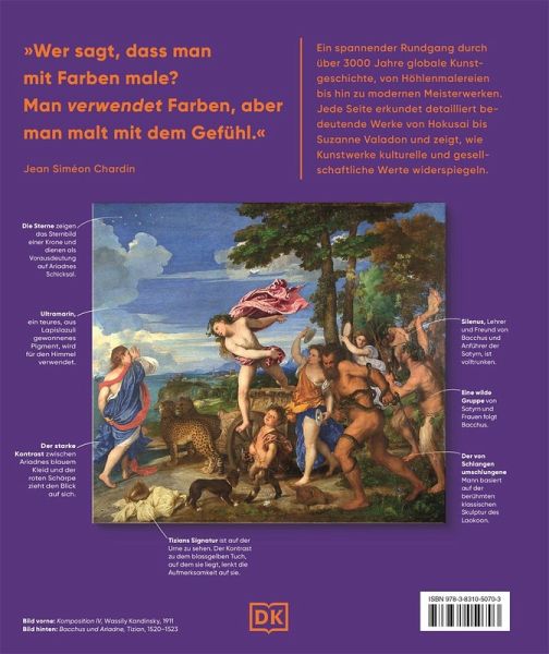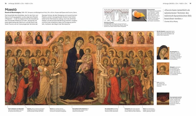 Dieser besondere Kunstführer ist wie ein Spaziergang durch eine Galerie der Weltkunst mit einem versierten Experten an Ihrer Seite. Woher stammt die Venus von Willendorf? Was bedeuten die Farben in Leonardos "Abendmahl"? Und warum vernichtet Banksy seine Kunstwerke? Kein Museumswärter stört Sie, während Sie sich in Ruhe in die großformatigen Abbildungen vertiefen. Die Kommentare zu jedem Kunstwerk liefern wertvolle Einblicke in Stil und Technik, rücken spannende Details in den Fokus und enthüllen die tiefere Bedeutung. Über 500 berühmte und weniger bekannte Gemälde, Skulpturen und Drucke aus allen Erdteilen, Epochen und Stilrichtungen geben einen einzigartigen Überblick über die Kunstgeschichte von den Anfängen bis heute.