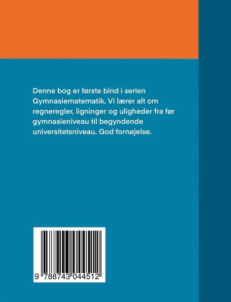 Denne bog er første bind i serien Gymnasiematematik. Vi lærer alt om regneregler, ligninger og uligheder fra før gymnasieniveau til begyndende universitetsniveau. God fornøjelse
