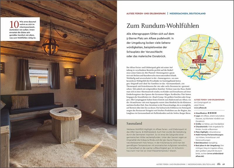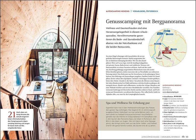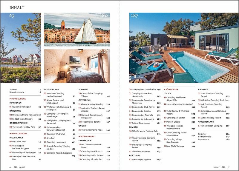 Die Sehnsucht nach Freiheit und Naturnähe lässt sich wunderbar mit Luxus und Komfort verbinden. Die top prämierten Campingplätze in Europa überzeugen nicht nur durch eine traumhafte Lage, sondern auch durch exklusive Ausstattungsmerkmale, wie Poollandschaften, Wellnessangebote, Kinderbetreuung, Brötchenservice oder privatem Bad neben dem Wohnmobil. Neben ausführlichen Platzporträts werden alle Highlights in der Umgebung vorgestellt, die erlebnisreiche und interessante Ausflüge garantieren.