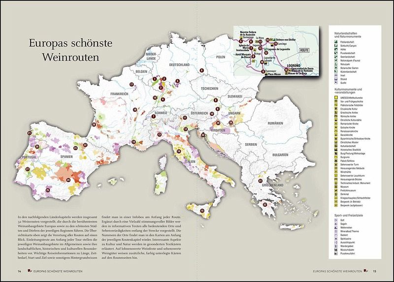 Europas wundervolle Weinstraßen begeistern sofort mit ihrem Charme. Von der Weinstraße im Chianti über die Fränkische Bocksbeutelstraße bis zu den Weingärten des Peloponnes - über 30 Reiserouten durch die schönsten Weinregionen Europas lassen das Herz von Weinliebhabern höherschlagen. Es begegnen einem dabei malerische Weinberglandschaften ebenso wie charmante Dörfer. Sie alle bestechen durch idyllische Naturlandschaften, die guten Tropfen ihrer Region und so manch weitere Kostlichkeiten rund um den Wein.