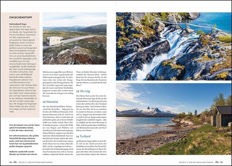 Zur idealen Vorbereitung von Reisen in das Land der Mitternachtssonne und Polarlichter dienen detaillierte Routenkarten und der integrierte Reiseatlas sowie die übersichtlichen Etappenbeschreibungen. Ergänzt wird das Reisebuch durch zahlreiche Stellplatzempfehlungen und Tipps für lohnenswerte Ausflüge entlang der Strecke.