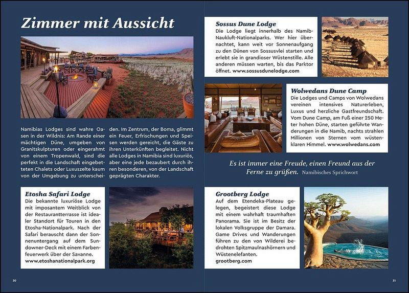Die Wüste lebt! Goldene Dünenkuppen bis zum Horizont, uralte Ritzzeichnungen, Himba-Hirten mit Rinderherden, Elefanten im Schlammbad - Namibia bietet zahllose faszinierende Bilder. Der Etosha-Nationalpark beherbergt als zweitgrößtes Schutzgebiet Afrikas neben den »Big Five« auch zahlreiche Vogel- und Antilopenarten. Im Namib-Naukluft-Nationalpark findet sich eine der ältesten und trockensten Wüsten der Erde sowie das schroffe Naukluft-Gebirge.
