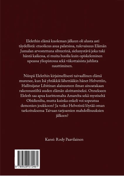 Elelethin elämä kuoleman jälkeen oli alusta asti täydellistä: etuoikeus asua palatsissa, tulevaisuus Elämän Jumalan arvostettuna sihteerinä, sielunystävä joka tuki häntä kaikessa, ei muita huolia kuin opiskeleminen upeassa yliopistossa sekä viikottaisista juhlista nauttiminen. Niinpä Elelethin kirjaimellisesti taivaallinen elämä murenee, kun Isä yhtäkkiä lähettääkin hänet Helvettiin, Hallitsijatar Libitinan alaisuuteen ilman ainoatakaan rakennustiiltä uuden elämän aloittamiseksi. Onnekseen Eleleth saa apua kurittomalta Amarelta sekä mystiseltä Obidienilta, mutta kuinka enkeli voi sopeutua demonien joukkoon? Ja voiko Helvetistä löytää oman tarkoituksensa Taivaan tarjoamien mahdollisuuksien jälkeen?
