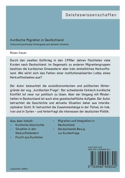 Die kurdische Frage rückte in den 90er Jahren durch den zweiten Golfkrieg, den Krieg zwischen der kurdischen Widerstandsbewegung und dem türkischen Militär in der Türkei sowie durch die vehementen Proteste von Angehörigen der kurdischen Minderheit in der Bundesrepublik Deutschland in den Blickpunkt des öffentlichen Interesses. Diese Arbeit geht der Frage nach, wie sich die Tatsache auswirkt, dass kurdische Einwanderer im Unterschied zu vergleichbar großen Migrantengruppen nicht über die institutionalisierte Lobby eines Herkunftsstaates verfügen.In meiner Arbeit werden die sozioökonomischen und politischen Hintergründe von Kurden betreffenden Fragen nachgegangen. Dabei ist zu beachten, dass es sich bei dem türkisch-kurdischen Konflikt in der Türkei, bei den Auseinandersetzungen im Zusammenhang mit kurdischen Demonstrationen in der Bundesrepublik sowie der grundsätzlichen Frage des Umgangs mit Minderheiten in erster Linie um ein Problem handelt, das politisch zu lösen wäre. Umgekehrt gehen aber politische Interpretationen der kurdischen Frage und gesellschaftliche Diskurse über Kurden in die pädagogische Theorie und Praxis ein. Um dem auf die Spur zu kommen, ist ein interdisziplinärer Ansatz notwendig, der übergeordnete Zusammenhänge mit einbezieht. Es ist notwendig, auf den historisch-politischen Hintergrund der kurdischen Frage, wie sie sich in der Türkei, im Irak, Iran und in Syrien stellt, einzugehen sowie die Interessen zu hinterfragen, die den Entscheidungen der deutschen Politik in Bezug auf die kurdische Frage zugrunde liegen.