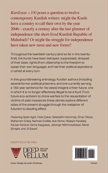 "Kurdistan +100 poses a question to twelve contemporary Kurdish writers: might the Kurds have a country to call their own by the year 2046 - exactly a century after the last glimmer of independence (the short-lived Kurdish Republic of Mahabad)? Or might the struggle for independence have taken new turns and new forms? Throughout the 20th century (and so far in the 21st), the Kurds have been betrayed, suppressed, stripped of their basic rights (from citizenship to the freedom to speak their own language) and had their political aspirations crushed at every turn. In this groundbreaking anthology, Kurdish authors (including several former political prisoners, and one currently serving a 183-year sentence for his views) imagine a freer future, one in which it is no longer effectively illegal to be a Kurd. From future eco-activism, to drone warfare, to the resuscitation of victims of past massacres, these stories explore different sides of the present struggle through the metaphor of futurism to dazzling effect. Featuring Qadir Agid, Yildiz Cakar, Selahattin Demirtas, Omer Dilsoz, Muharrem Erbey, Nariman Evdike, Ava Homa, Hèuseyin Karabey, Karzan Kardosi, Sema Kaygusuz, Meral Simsek & Jahangir Mahmood Waysi"--