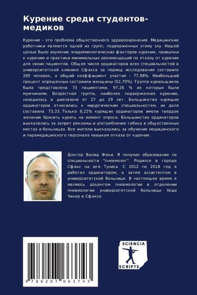 Kurenie - äto problema obschestwennogo zdrawoohraneniq. Medicinskie rabotniki qwlqütsq odnoj iz grupp, podwerzhennyh ätomu zlu. Nashej cel'ü bylo izuchenie äpidemiologicheskih faktorow kureniq, priwychki k kureniü i praktiki minimal'nyh rekomendacij po otkazu ot kureniq dlq swoih pacientow. Obschee chislo ordinatorow wseh special'nostej w uniwersitetskoj klinike Sfaxa za period issledowaniq sostawilo 285 chelowek, a obschij koäfficient uchastiq - 77,98%. Naibol'shij procent oproshennyh sostawili zhenschiny (52,70%). Gruppa kuril'schikow byla predstawlena 73 pacientami, 97,26 % iz kotoryh byli muzhchinami. Vozrastnaq gruppa, naibolee podwerzhennaq kureniü, nahodilas' w diapazone ot 27 do 29 let. Bol'shinstwo kurqschih ordinatorow otnosilis' k hirurgicheskim special'nostqm, ih dolq sostawila 73,33. Tol'ko 8,22% kurqschih ordinatorow imeli twerdoe zhelanie brosit' kurit' na moment oprosa. Bol'shinstwo ordinatorow wyskazalis' za zapret reklamy i upotrebleniq tabaka w obschestwennyh mestah i bol'nicah. Vse zhiteli wyskazalis' za obuchenie medicinskogo i paramedicinskogo personala nawykam otkaza ot kureniq.