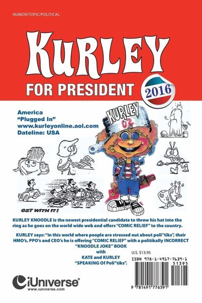 America "Plugged In" www.kurleyonline.aol.com Dateline: USA KURLEY KNOODLE is the newest presidential candidate to throw his hat into the ring as he goes on the world wide web and offers "COMIC RELIEF" to the country. KURLEY says: "In this world where people are stressed out about poli"tiks", their HMO's, PPO's and CEO's he is offering "COMIC RELIEF" with a politically INCORRECT "KNOODLE JOKE" BOOK with KATE and KURLEY "SPEAKING Of Poli"tiks".