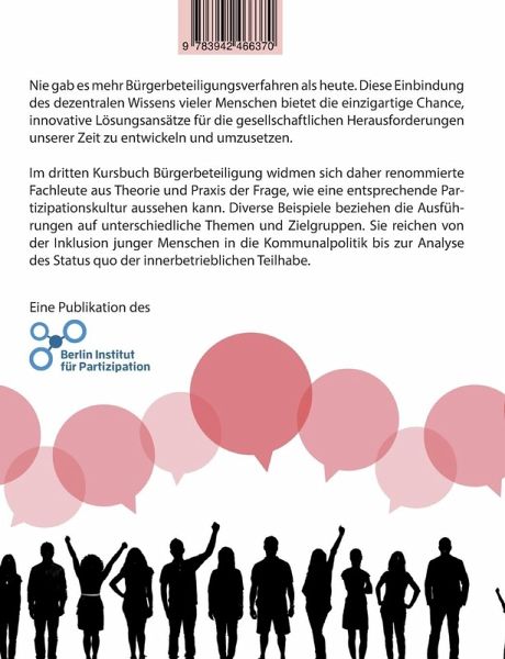 Bürgerbeteiligung liegt im Trend. Ob in Großverfahren oder bei kommunalen Detailfragen: Mit mehr Bürgerbeteiligung versuchen Entscheider in Politik und Wirtschaft, mehr Akzeptanz und Legitimation zu erzielen. Es ist längst kein Geheimnis mehr, dass gut gemachte Bürgerbeteiligung in der Lage ist, unsere Demokratie zu "revitalisieren". Doch dazu braucht es eine Reihe von Kriterien, die erfüllt sein müssen. Ansonsten werden schnell Zweifel an den Beteiligungsprozessen laut und es entsteht der Vorwurf von Scheinbeteiligung. Das seit 2015 erscheinende KURSBUCH BÜRGERBETEILIGUNG setzt an dieser Stelle an. Es versteht sich als eine Publikation, die stetig den Status quo der Partizipation vorrangig in Deutschland analysiert. Dazu versammelt das Kursbuch Experten aus Politik, Wirtschaft, Zivilgesellschaft und Wissenschaft, um die gegenwärtigen Entwicklungen darzustellen, einzuschätzen und zu evaluieren. Das Kursbuch verbindet wissenschaftliche Erkenntnisse mit praktischen (Methoden-)Erfahrungen und schlägt eine Brücke zwischen Theorie und Praxis. Es ist damit eine hervorragende Grundlage für die konkrete Planung von Bürgerbeteiligung auf allen Ebenen.