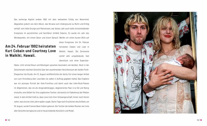 das unplugged-Konzert von Nirvana aus New York wurde gezeigt und in meiner jungen Welt sollte es…mehrIch weiß es noch wie heute: mitten in der Nacht saß ich 1994 gebannt vor dem TV und MTV flimmerte über dem Bildschirm. Dieses leichte Röhren-brizzeln war zu hören, das Bild nicht so brillant klar wie heute aber es ging primär um den Ton der wenig später meine Ohren und mein Gehirn verzaubern sollte: das unplugged-Konzert von Nirvana aus New York wurde gezeigt und in meiner jungen Welt sollte es Spuren hinterlassen. Die ersten Akkorde erklangen, diese einmalige Stimme Cobains zeigte sich wie aus dem Nebel und seine Band-Kollegen hüllten diese dazu stimmig ein. Eine ältere Freundin war zu Besuch und ein richtig großer Fan der Band. Sie hatte Tränen in den Augen und auch heute, nach mittlerweile über 30 Jahren verstehe ich auch immer noch warum: Nirvana schrieb Musik-Geschichte und ganz besonders Kurt Cobain selbst. Ich las mich durch seine Tagebücher, verfolgt so manche gute aber auch schlechte Literatur rund um ihn und die Band und ließ auch diese Musik mal über Jahre ruhen. Vor einiger Zeit war es wieder einmal so weit. Mein Gemütszustand gab es her und „The Man who sold the world“ sollte zum Dauerbrenner in meinem Geiste werden, der Pennyroyal-Tea dazu sollte dies untermalen und im Nevermind war ich in diesem Jahr sowieso schon viel zu lange gefangen. Und dann erschien im Oktober des Jahres 2024 ein neues Buch über Kurt Cobain! Sein Konterfei ziert das Cover, man meint seine unvergleichliche Stimme zu hören. Was erwartet nun den Leser hier? Einerseits eindrückliche Fotografien und ja, auch kleine Zeitreisen. Aber natürlich soll es um Cobains Leben gehen. Wer bereits den Buchmarkt intensiv dazu „studiert“ hat, wird hier keine Neuigkeiten erlesen, die sind nunmehr alle bereits mehr als ausgetreten und hinreichend bekannt. Aber dennoch träumt man sich in die Texte, versucht immer noch die kaputte und besondere Seele Cobains analysieren zu müssen. Schnell stellte ich auch hier wieder fest: wir werden nach wie vor keine Antworten darauf finden! Diese hat Cobain für immer mit sich genommen und damit sollte man es auch belassen. Seine Musik, die Musik Nirvanas, seine Erfolge und Misserfolge, seine ganz persönlichen Reisen sind geschehen und unumkehrbar. Er wird für immer in der Musikwelt Fußabdrücke hinterlassen haben aber neue Bücher über ihn, braucht es nicht wirklich. Dieses Werk hier ist hübsch anzusehen aber kein Burner. 3,5 gute bis sehr gute Sterne hierfür!